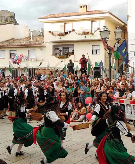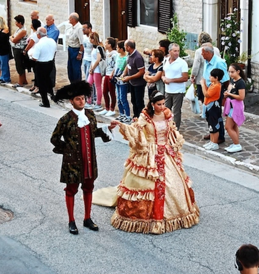 The entire village travels back in time, bringing to life for one day ladies, flag bearers, and nobles as the episodes of the two mayors of the Terra di sopra and Terra di basso are reenacted and Santa Caterina is celebrated for helping the population drive out the brigands.